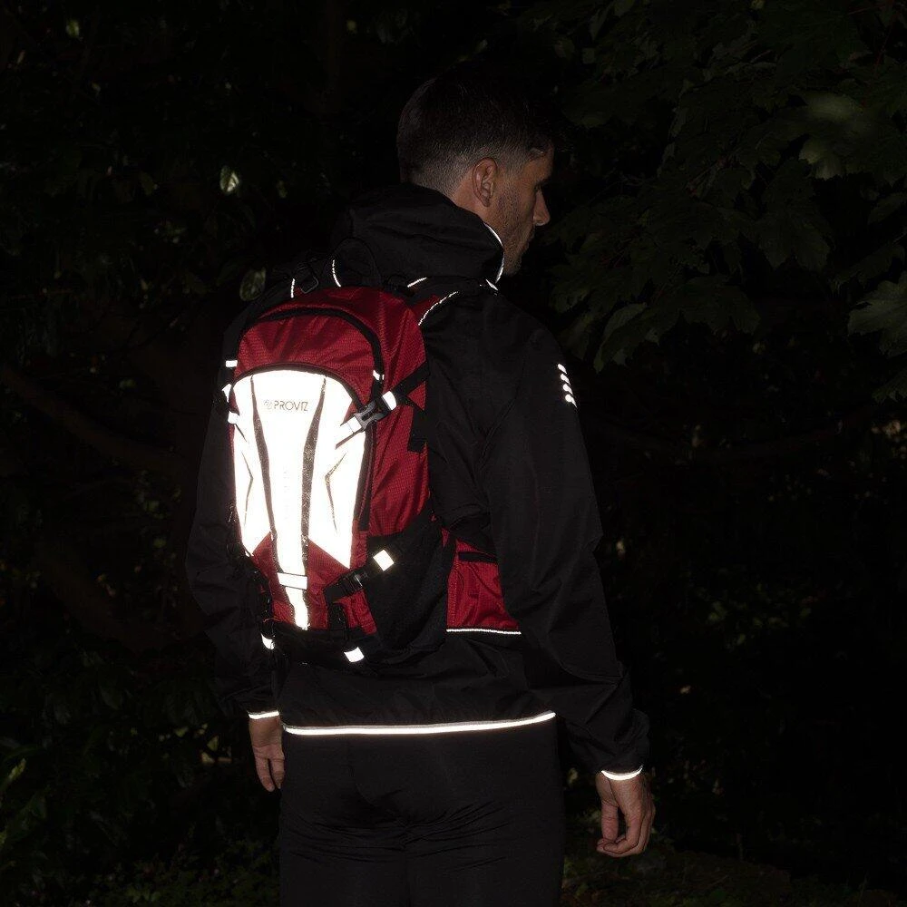 As with all Proviz gear we have incorporated a huge amount of our highly reflective REFLECT360 material (main compartment, side tabs and front straps) to the backpack so that you are much more easily identifiable when out on the roads when it is dark. Or, in the worst scenario it can be used as a reflective beacon if you were to get lost on a hike as the reflective material reflects light back to the light source ie torch lights from a search party.