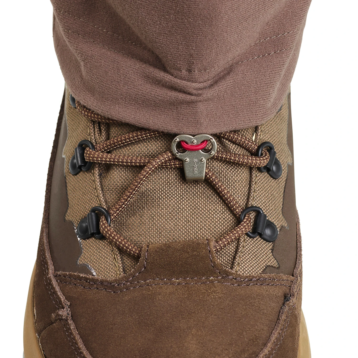 The hook at the bottom of the trousers attaches to your shoe laces to keep your trousers in place and prevent the cold or snow from getting in under your trousers.